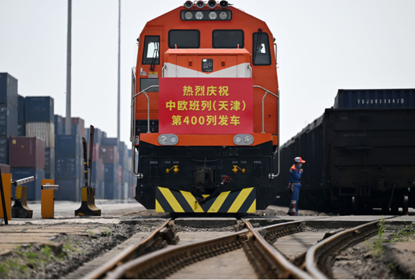 6月30日,中国铁路北京局集团有限公司天津新港站今年以来第400列中欧班列鸣笛发车,装载货物以汽车、机械设备、日用百货为主。据了解,今年以来,从天津发车的中欧班列较去年同期增加173列,增幅超七成。